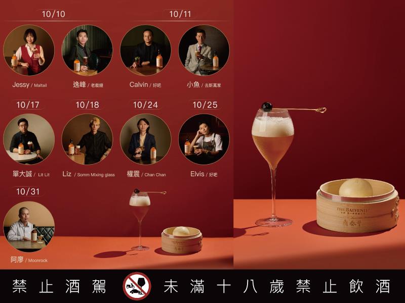 週末「客座調酒之夜」邀集九位來自北中南的知名調酒師,名單涵蓋《亞洲五十大酒吧》入選酒吧與百富威士忌學院歷屆獲獎者:台北|去斯萬家 小魚、Lit Lit 單大成;台中|好吧 Elvis、Calvin、Chan Chan 權震、老裁縫 逸峰、Somm Mixing glass Liz;台南|Moonrock 阿廖;高雄|MALTAIL Jessy。以百富與鼎泰豐相映的精神為靈感,創作每日限量匠藝特調,帶來細膩且層次豐富的味覺探索。
