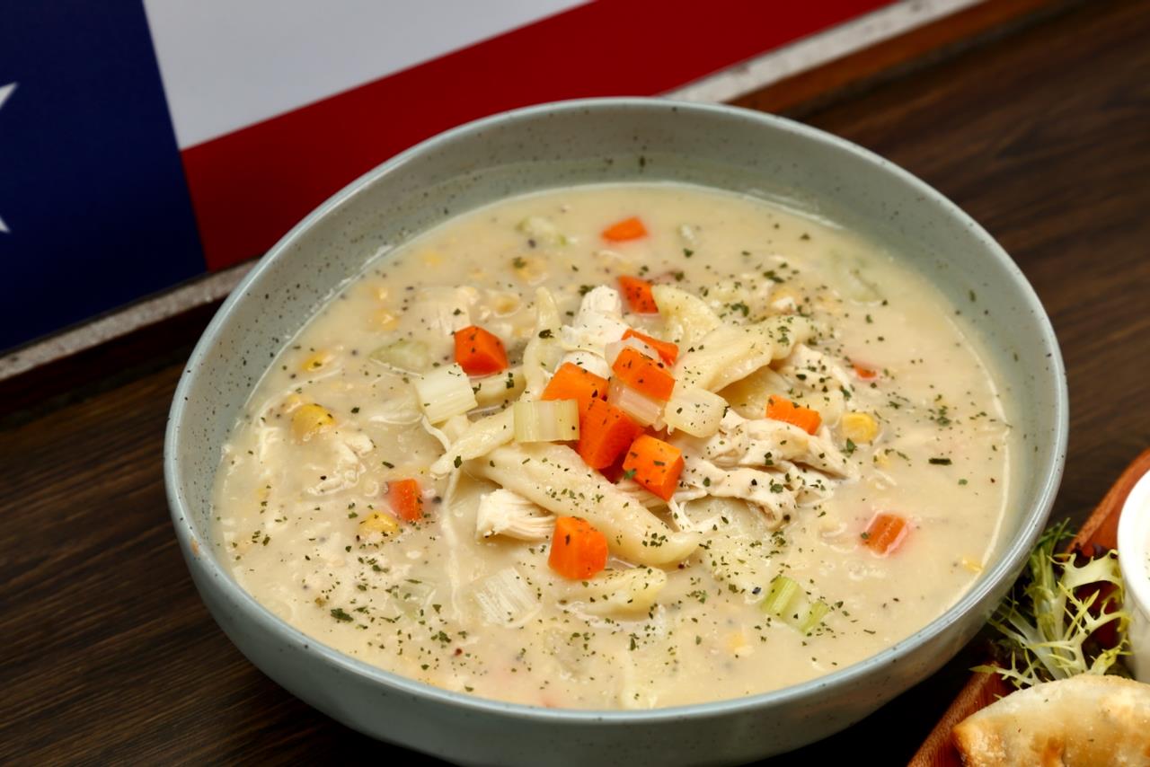 除了主食,餐桌上也少不了溫熱的湯品。賓州德式雞肉玉米濃湯(Pennsylvania Dutch Chicken Corn Soup) 是許多賓夕凡尼亞州家庭從小喝到大的味道。這類濃湯源自以簡單食材慢慢熬煮的飲食習慣,雞肉、玉米與蔬菜自然融合,味道溫和,卻在餐桌上很有存在感。