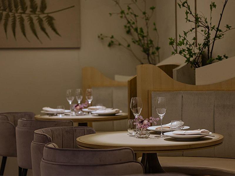 有「高雄最佳約會餐廳」之稱的方蒔,外觀素雅,室內使用暖杏色調、淺色木材與大理石,納入大量圓弧形元素,讓空間通透又有流動感,並刻意安排桌距,令人感到舒適自在。暖黃燈光點亮圓型餐桌、卡座沙發,氣氛柔美且溫馨,備受戀人們喜愛。主廚蔡中和以高雄成長的生活記憶串聯當季食材,呈現摩登的歐陸料理,搭配侍酒師設計的佐餐酒,並於節日推出額外加點的龍蝦等限定料理,滿足賓客對於儀式感的期盼。