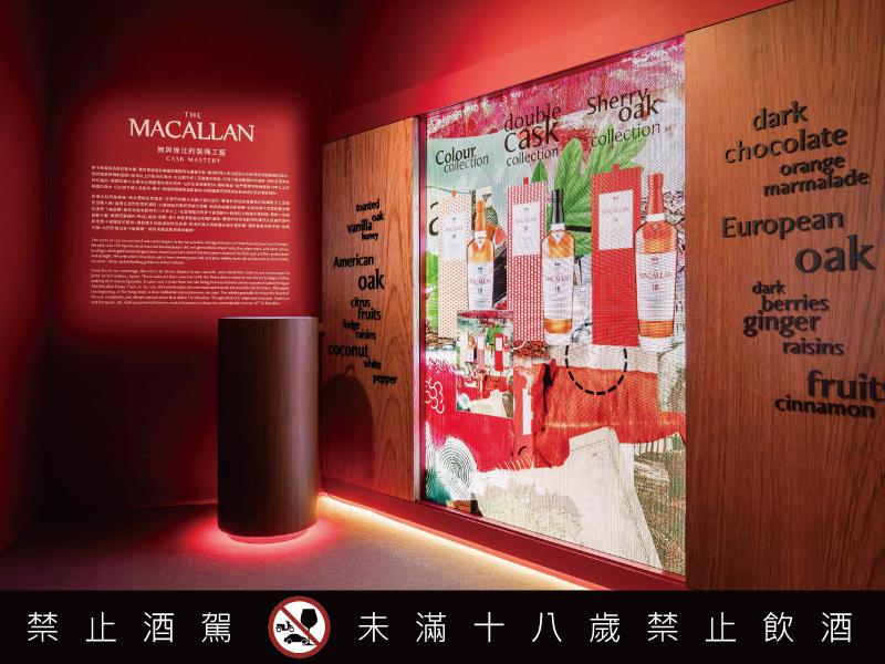 最高品質橡木桶接著送到西班牙赫雷斯進行雪莉酒潤桶,而麥卡倫擁有雪莉酒界的羅曼尼康帝「瓦德比諾Valdespino」,使用頂級雪莉酒進行潤桶,從橡實開始、精選橡木、裁切、風乾、手工定製桶至雪莉酒潤桶,每一道工序皆傾注所有心力只為成就無與倫比的珍釀,成為業界唯一擁有完整雪莉橡木桶供應鏈的威士忌品牌,從源頭即精準控制風味品質,最終送往蘇格蘭麥卡倫酒廠注入新酒靜置熟成。展覽設有從橡實到餐桌的雪莉橡木桶的完整旅程,包含雪莉酒聞香與來自赫雷斯的白堊質Albariza 土壤觸感體驗,邀請觀者親身感受雪莉王者風味的源起。
